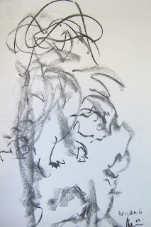 This was quite different to the other tasks as you couldn't use your hands or eyes to see the subject of your drawings. I could feel Nicola's shoulder blades move as she was drawing and also her spine. These are the areas that stand out most in the drawings. I tried to emphasise this with darker marks. The more I could feel something the harder I pressed, suggesting pressure on my back.